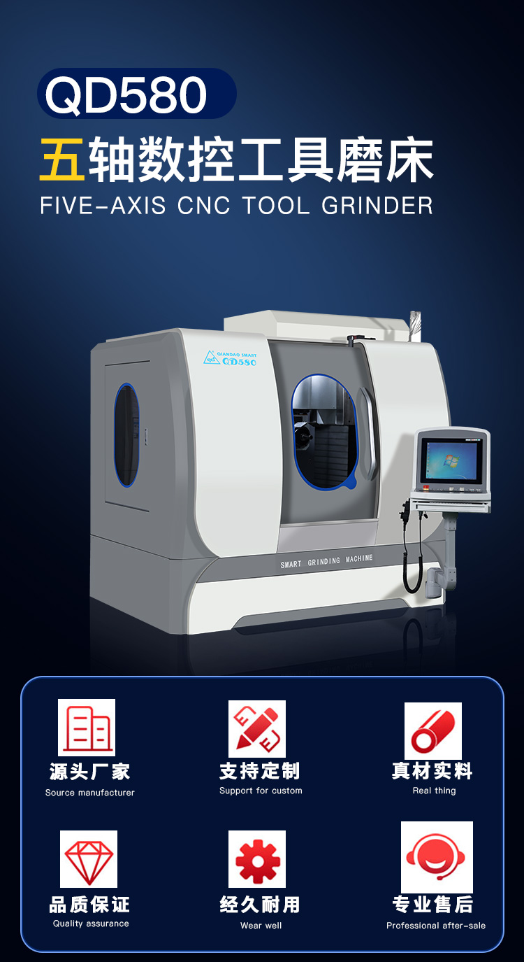 QD580五軸數(shù)控工具磨床是一款性能優(yōu)良的刀具磨削中心,適用于生產(chǎn)或修磨銑削類(lèi)刀具、鉆削類(lèi)刀具、成形刀具等。