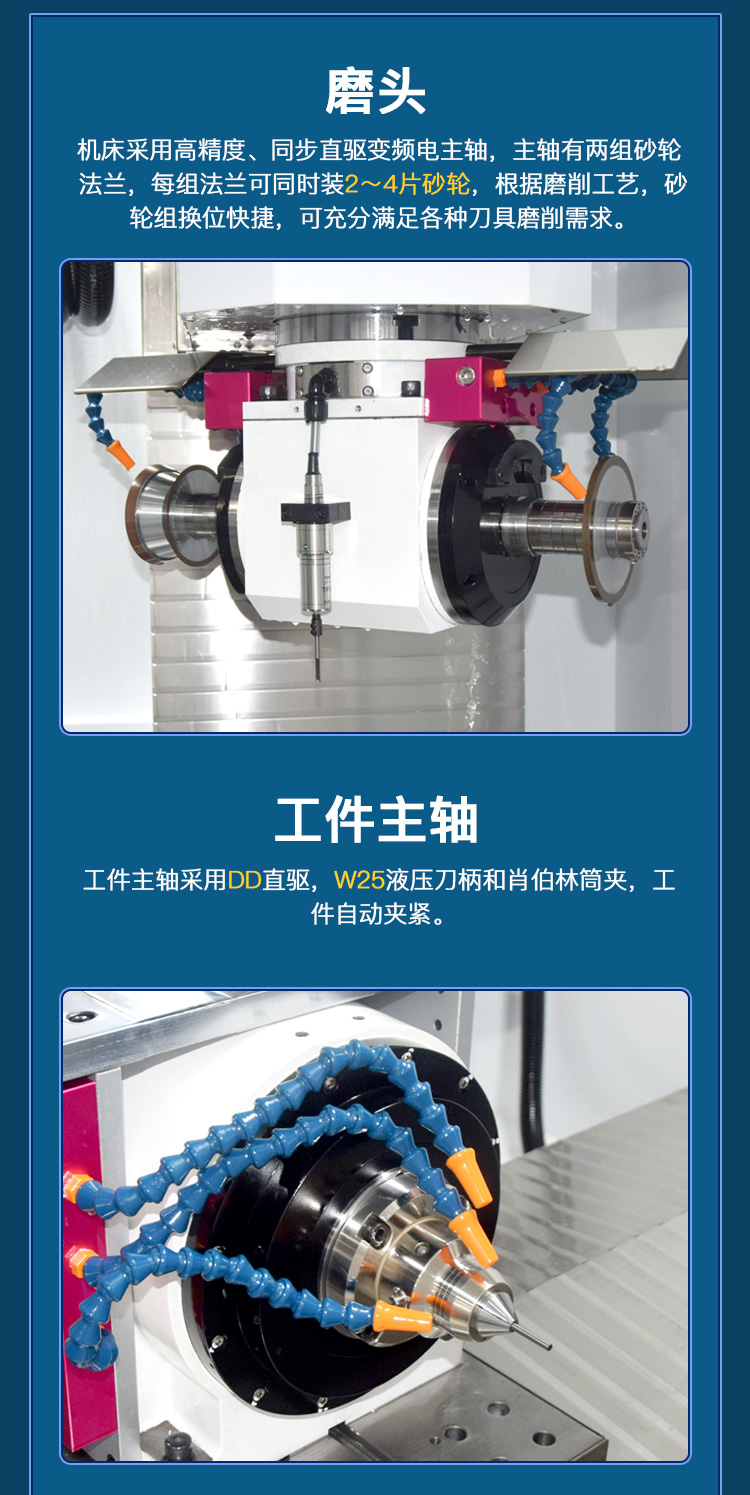 QD560是千島公司新研發(fā)的五軸五聯(lián)動數(shù)控工具磨床,是一款高性價比刀具磨床,適用于生產(chǎn)或修磨各類銑削類刀具、鉆削類刀具、成形刀具等 。