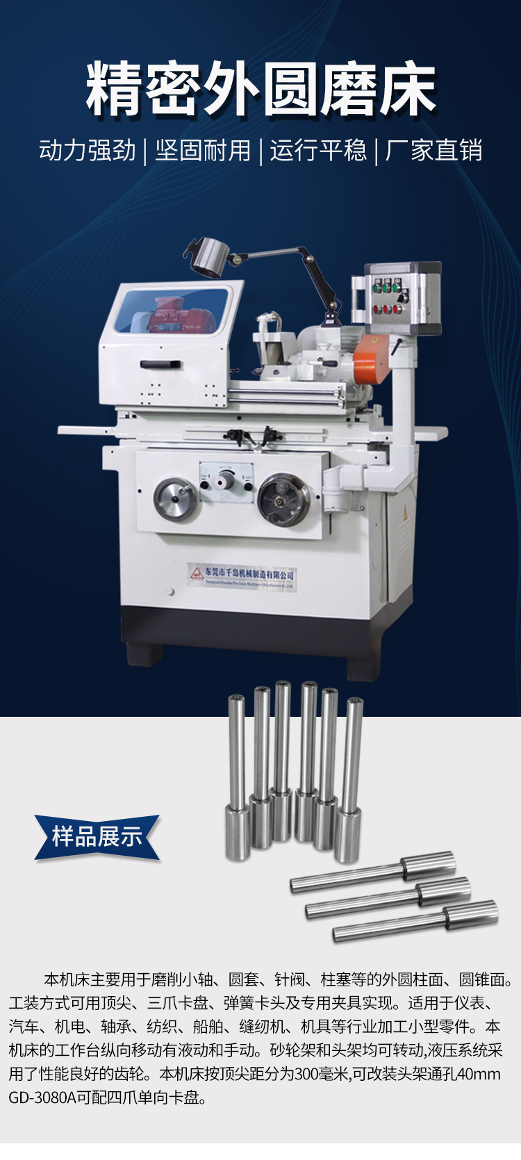 本機床主要用于磨削小軸、圓套、針閥、柱塞等的圓柱面、圓錐面;